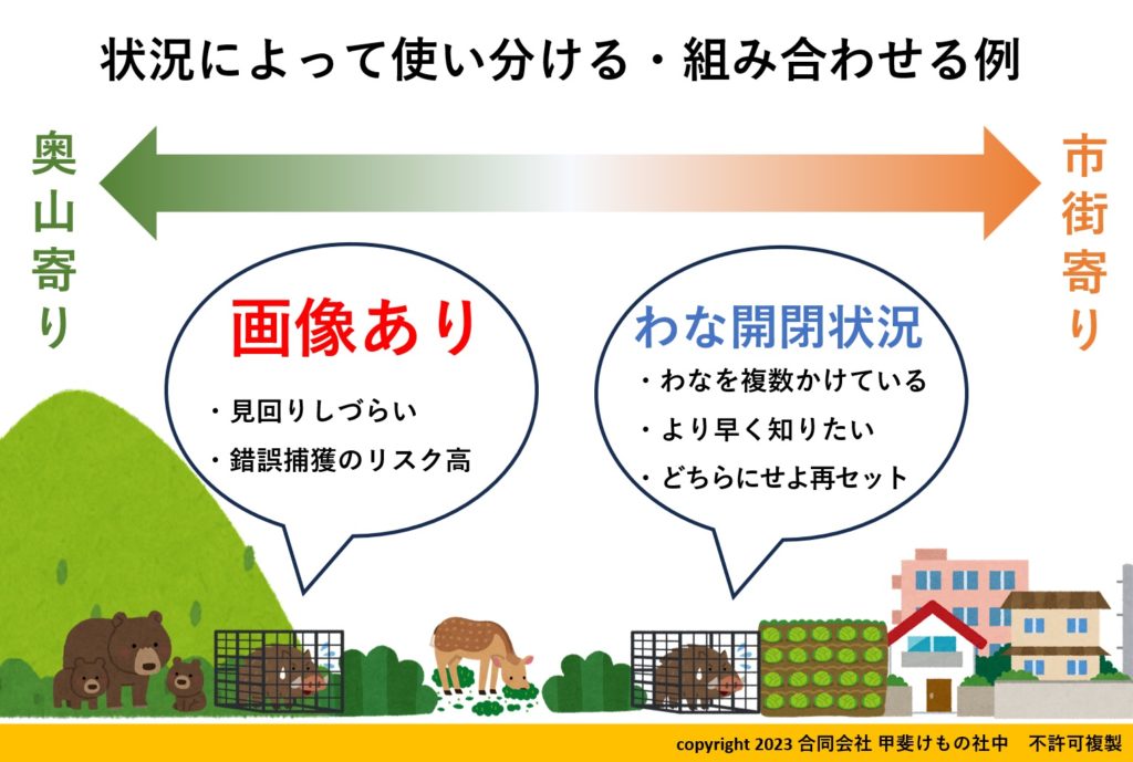 しかし、いかんせん視覚情報がないため、「何かがいる」「何かがつかまった」「わなが作動した」程度の情報です。